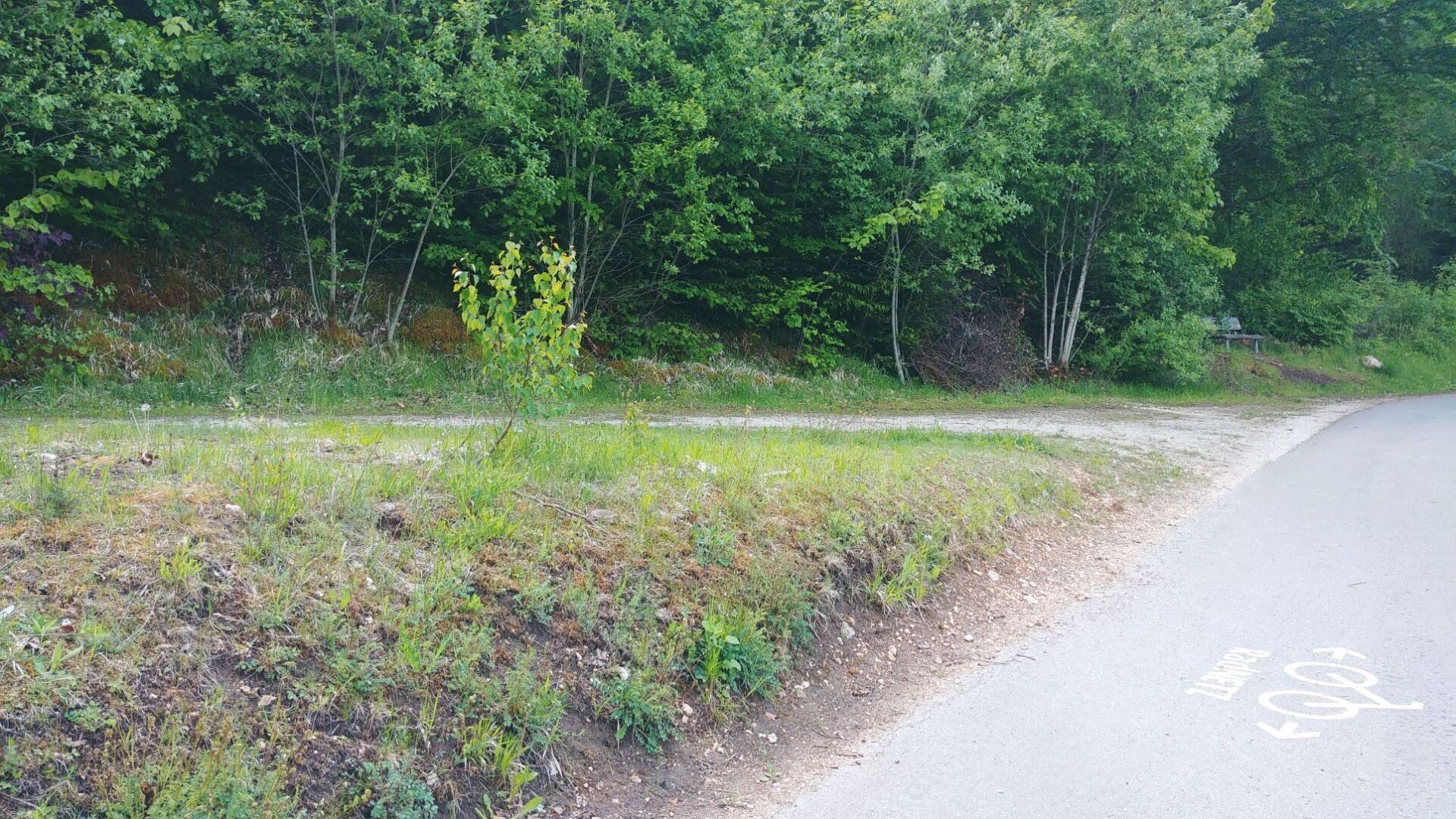 Das Rote Dreieck ist immer noch unsere Wegemarkierung. Am hinteren Ende des Parkplatzes folgen wir einem zunächst noch breiten Weg. Nach kurzer Zeit