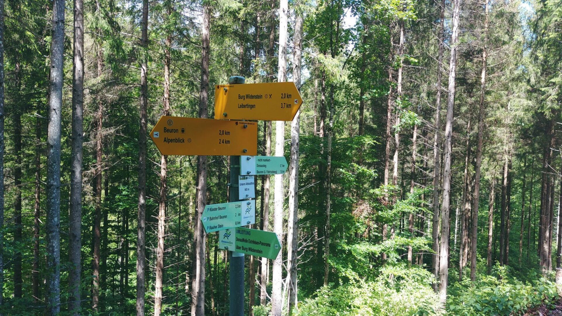 Laut Wegweiser führt der Weg zur Wildenstein nach oben.
