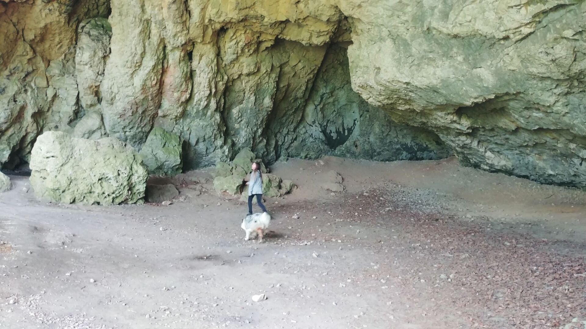 Wir wandern flussabwärts weiter und kommen an der Maurus - Höhle vorbei. Außerhalb der Fledermaus- Schutzzeiten lohnt sich ein Blick ins Innere.